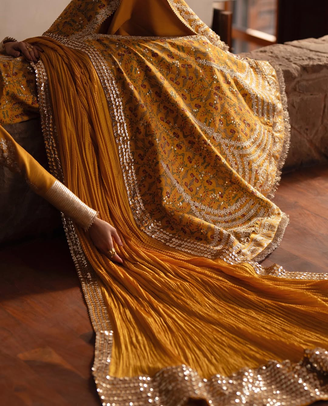 • Dupatta: Made of medium silk (Crushed).