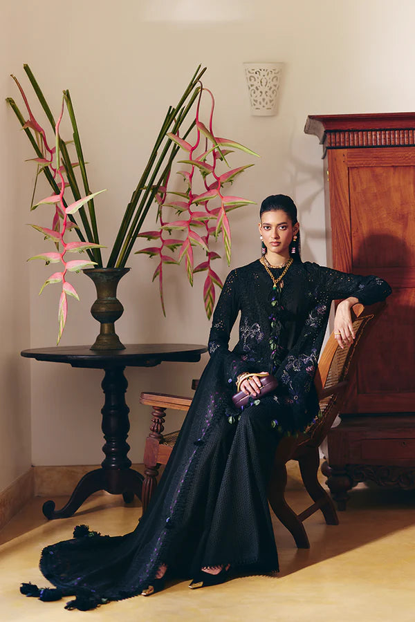 - Midnight Black cotton shirt featuring a close-to-neck neckline. It has marori detail on the front, with tassels hanging from the neck. The shirt includes embroidery made with various techniques, and lace details elevate its appearance. Moroccan floral embroidery completes the look, and the sleeves are fitted. It comes with a slip.
