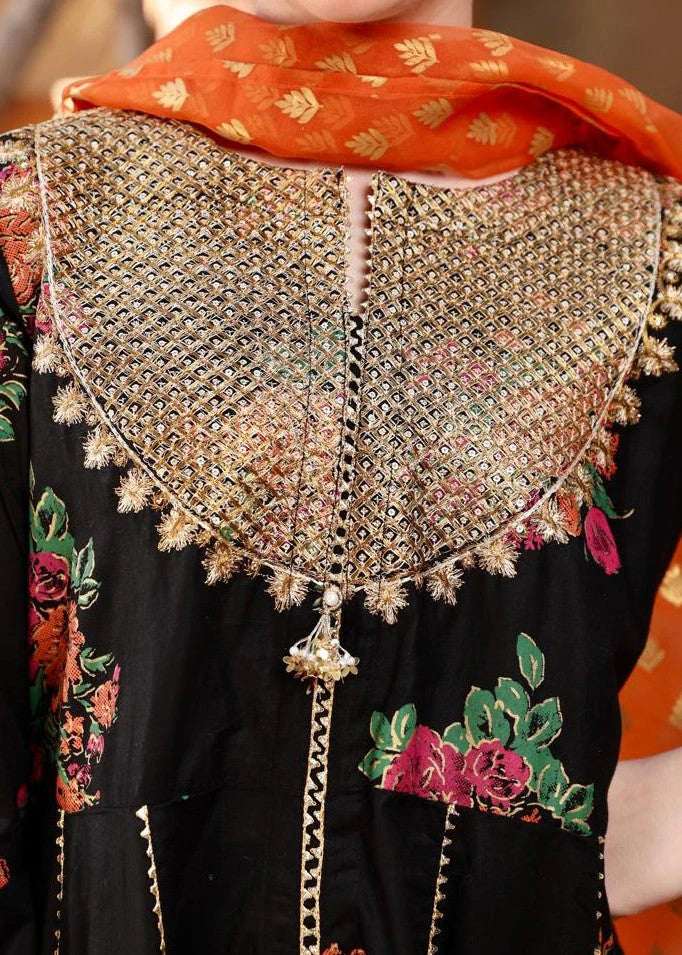 -Sequins, tilla and thread embroidered Cotton Lawn Pishwaas - Cotton Lawn Trouser -Screen Printed Organza dupatta with Kiran Lace. This article includes Pishwaas, trouser and Dupatta.