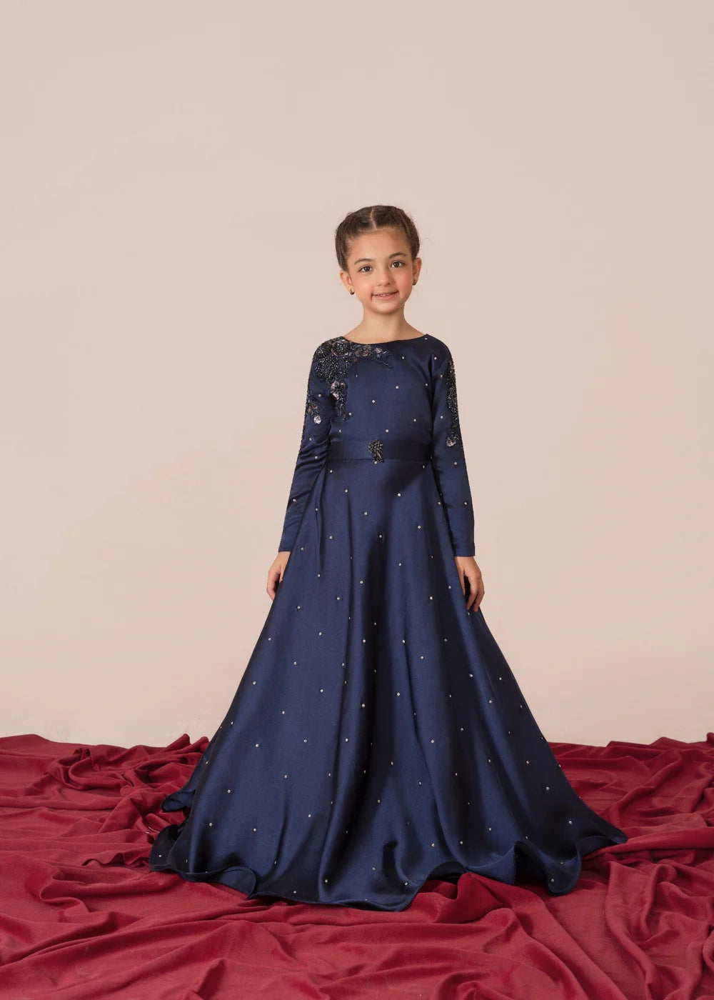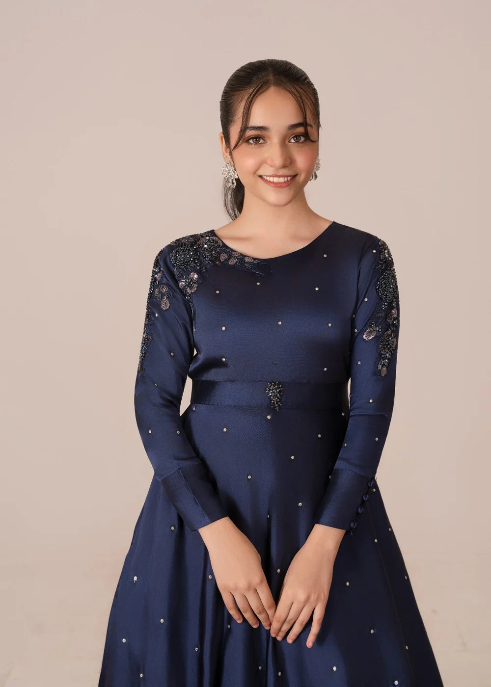 This exquisite Festive/Party Wear Navy Blue Silk Flared Pishwas for girls is a versatile piece suitable for all seasons. The intricate Adda Work adds a touch of elegance to the sleek silhouette, making it perfect for any occasion. A must-have by Alyssa for young fashionistas.