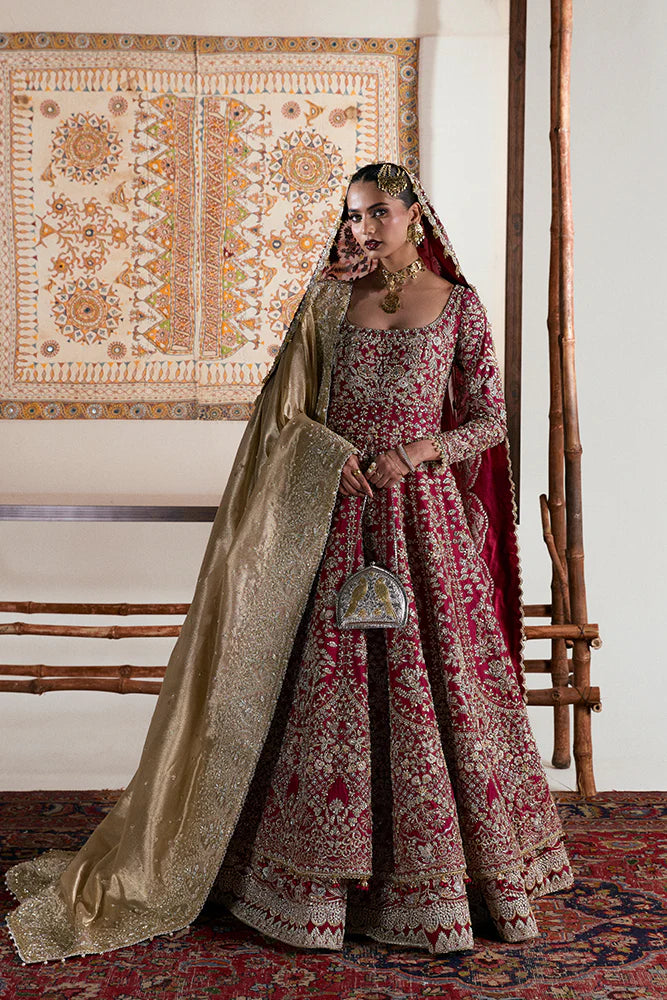 - RAW SILK PISHWAS WITH ALL-OVER TILLA EMBROIDERY IN GOLD-SILVER WITH GREEN ACCENTS AND TASSEL FINISHING