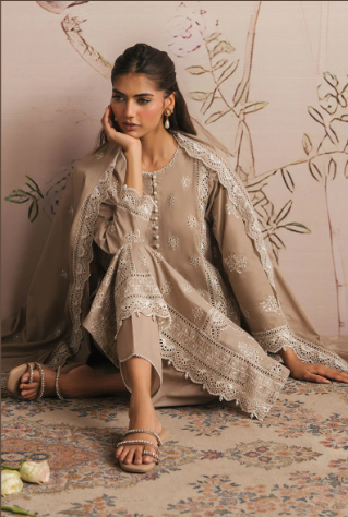 - This Gray Forest 3PC Chikankari Suit features a delicately embroidered lawn front and sleeves, paired with a dyed back for subtle contrast. The cambric dyed trouser offers comfort and durability, while the lawn chikankari dupatta completes the ensemble with elegant craftsmanship. Perfect for those who appreciate refined traditional wear with expert detailing.