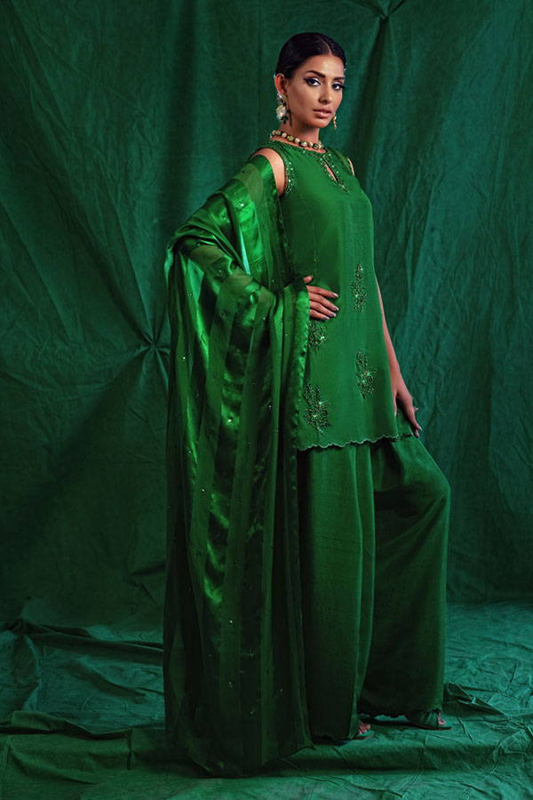 This captivating ensemble features a luxurious Sheesha Raw Silk shirt in a stunning shade of purple, beautifully finished with matte gold lace, adding a touch of sophistication. Paired with a fully embellished sequin dupatta, adorned with intricate embroidery on all four sides, Zarin is designed to make a statement. Elevate your style with this timeless piece.