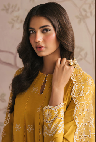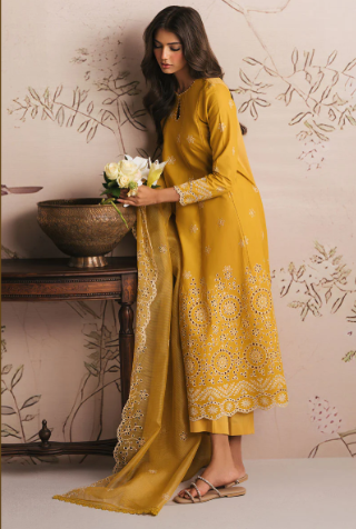 - This Amber Glow 3PC Chikankari Suit features a delicately embroidered lawn fabric on the front and sleeves, paired with a dyed back for subtle contrast. The cambric dyed trouser offers comfortable wear and durability, while the net chikankari dupatta adds an elegant finishing touch. Perfectly balanced for both style and comfort, this ensemble showcases traditional craftsmanship with a refined modern appeal.