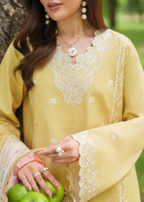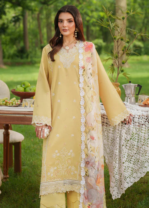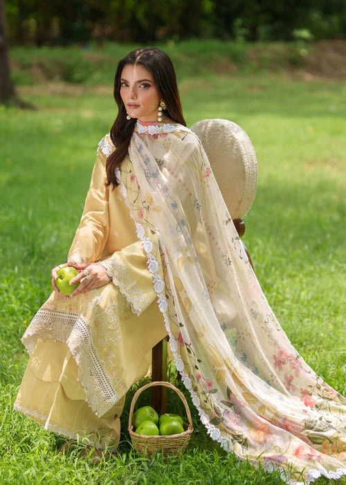 Details of Fabric: 1.15 Meter Embroidered 3 panels for front on dyed cambric. 30" inches Embroidered border patti for front and back on organza. 0.65 Meter Embroidered sleeves on dyed cambric. 1.15 Meter Plain dyed cambric for back. 2.50 Meter Digital printed dupatta on poly silk. 2.25 Meter Plain dyed cambric trou