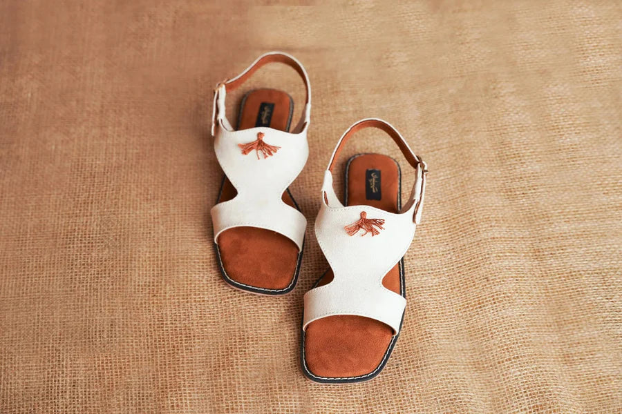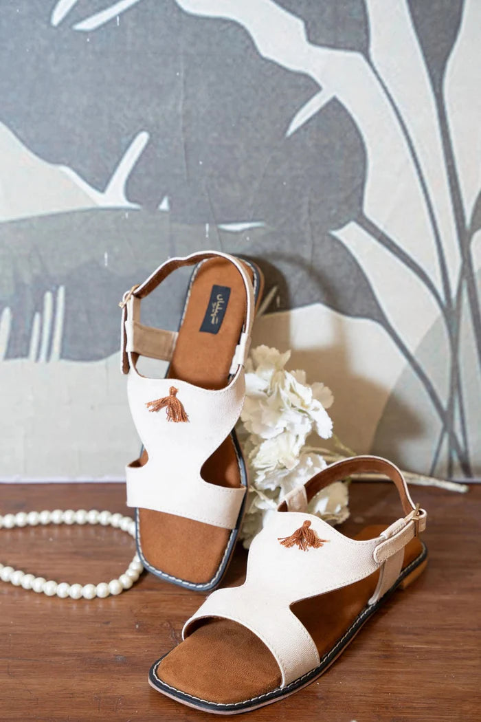 Step into effortless elegance with Boho Bloom Sandals. Crafted with soft, natural canvas and accented with charming thread tassels, these sandals are a tribute to easy-going sophistication. The warm brown cushioned sole offers day-long comfort, while the adjustable strap ensures a perfect fit. With their earthy tones and minimalist flair, Boho Bloom Sandals are your go-to choice for brunch dates, beach strolls, and everything in between. Pair them with flowy dresses, linen pants, or your favorite summer denims. Tassal is not included.