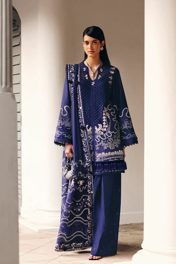 - The dupatta is made of chiffon in a matching tone and features modern patterns, lace trim, and various embroidery techniques. Pompom details line the edges, along with coins to complete the look.