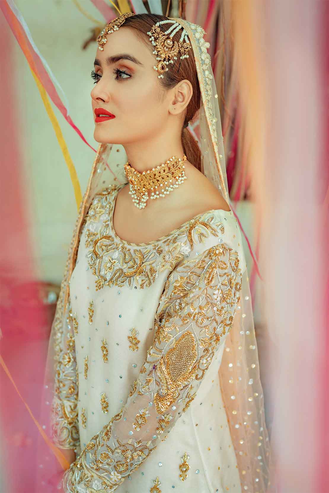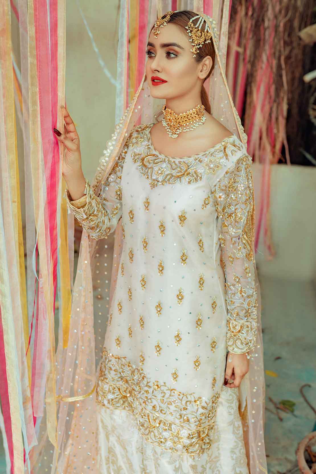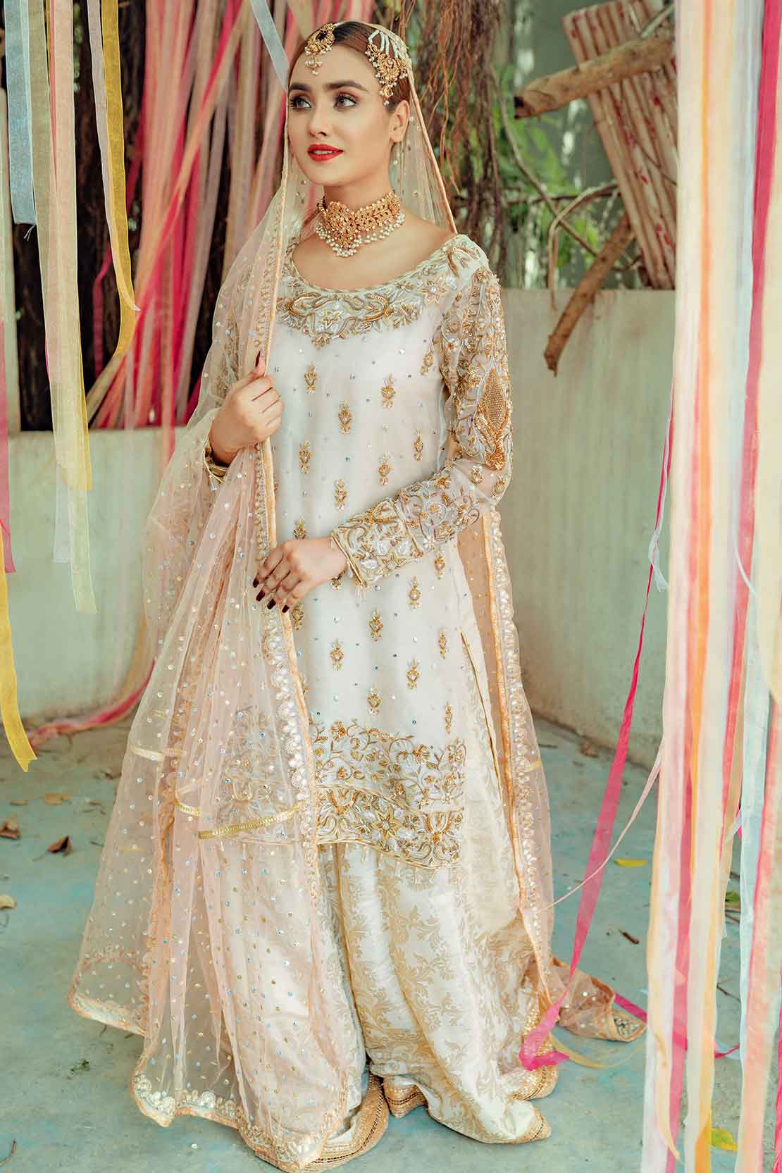 • Dupatta: Silk net with heavy sequins