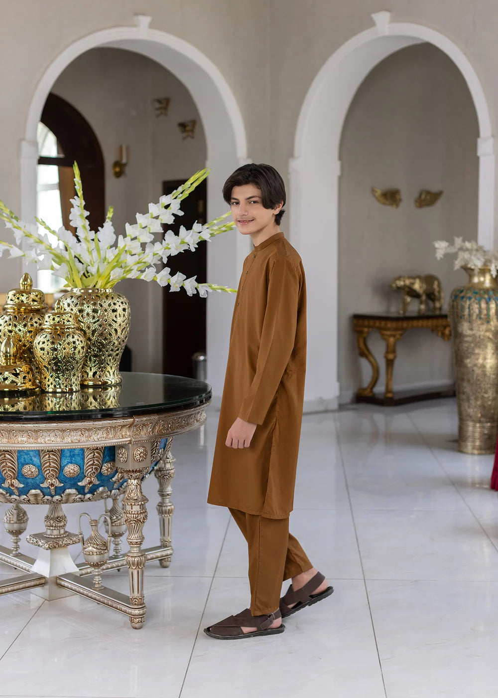 WASH & WEAR MUSTARD BROWN KURTA TROUSER -