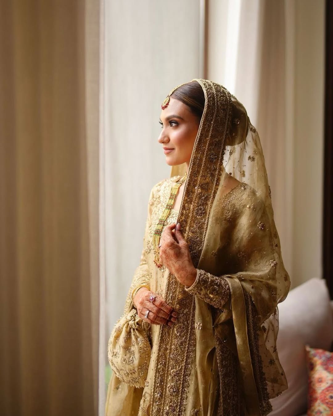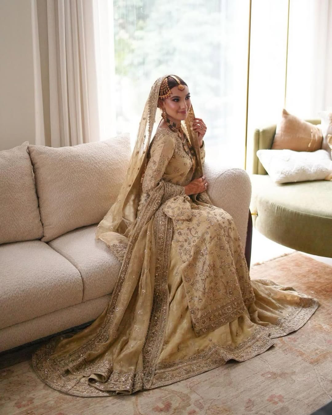Regal in gold! Huda Rana shines in our breathtaking gold bridal creation✨