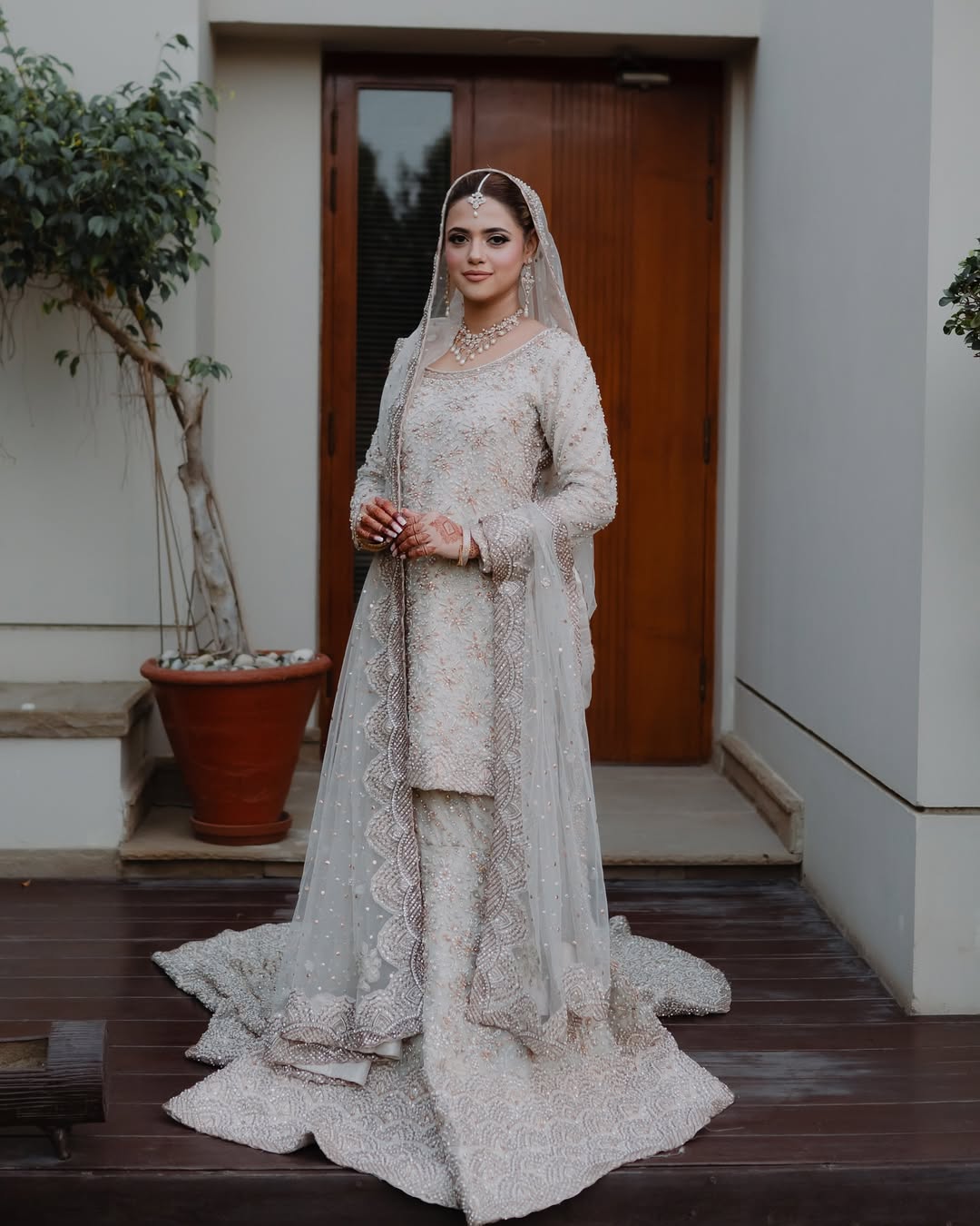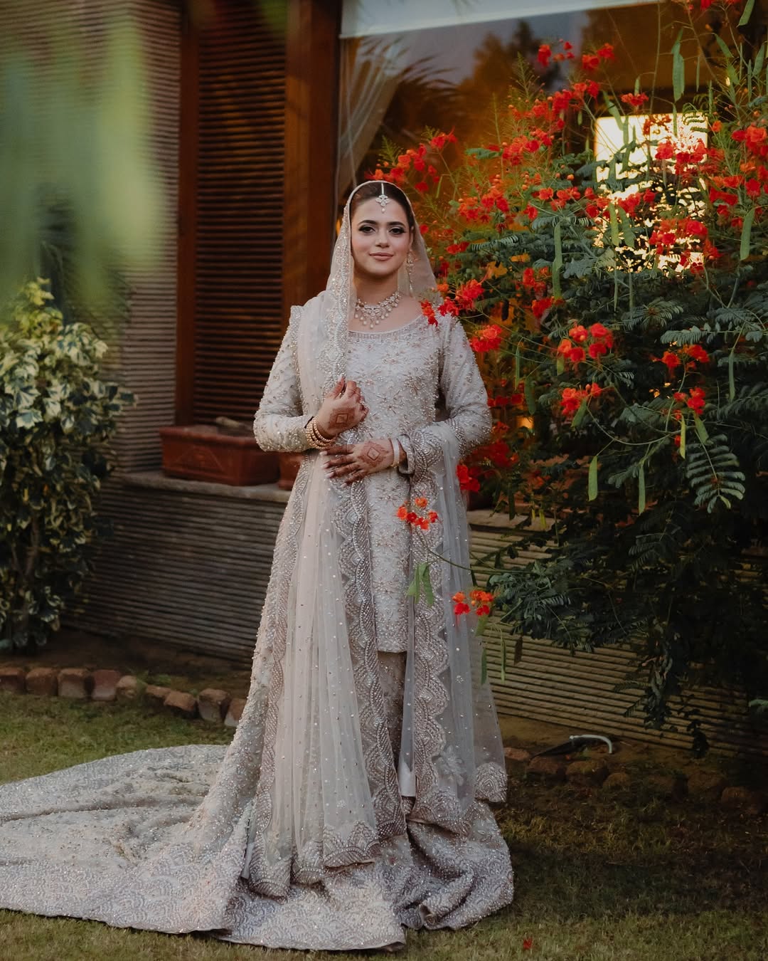 Gracefully adorned in a dreamy bespoke bridal ensemble —