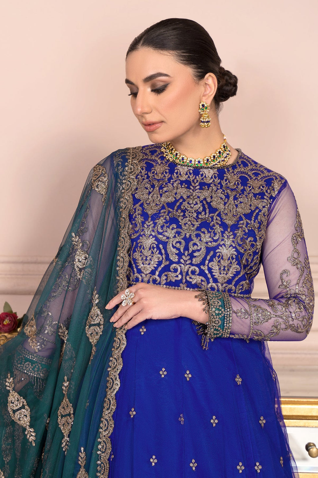Crafted on a luscious canvas in blue base representing elegant work of art, this ensemble is a vision to praise. It comes paired with a beautifully designed dupatta in shade of green giving it an enhanced aura.